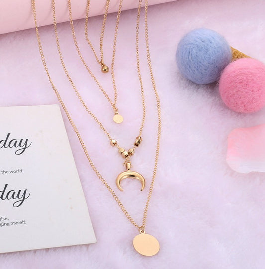 Retro Ethnic Style Moon Horn Disc Alloy Multilayer Necklace